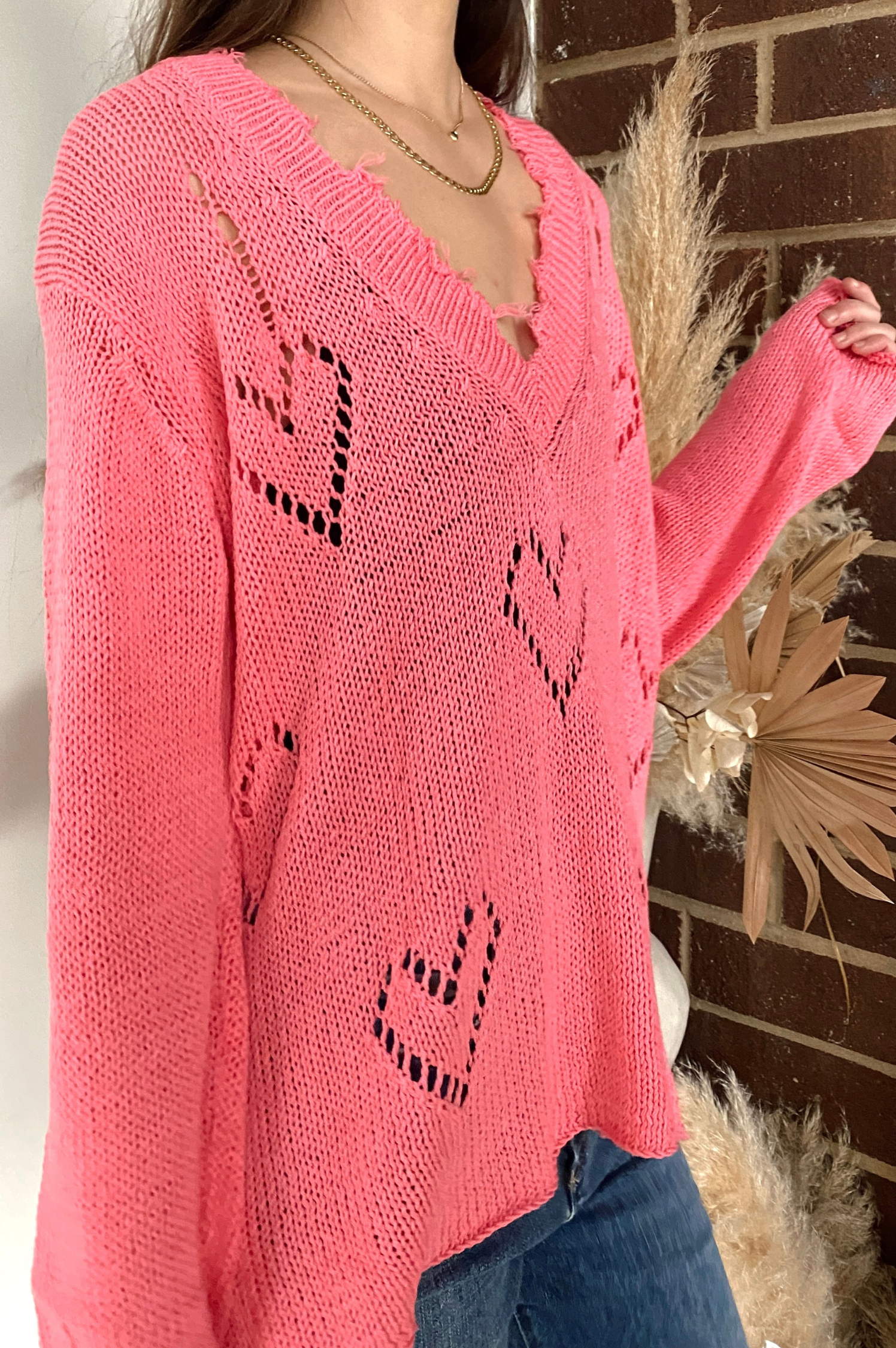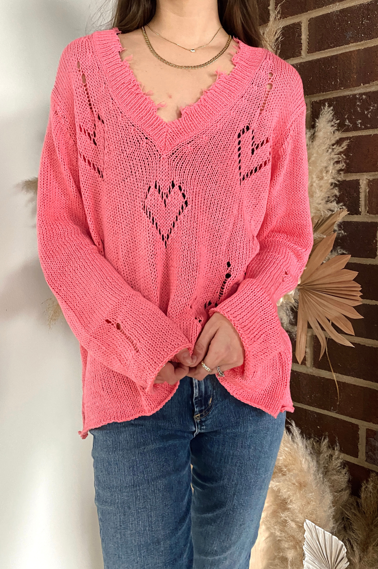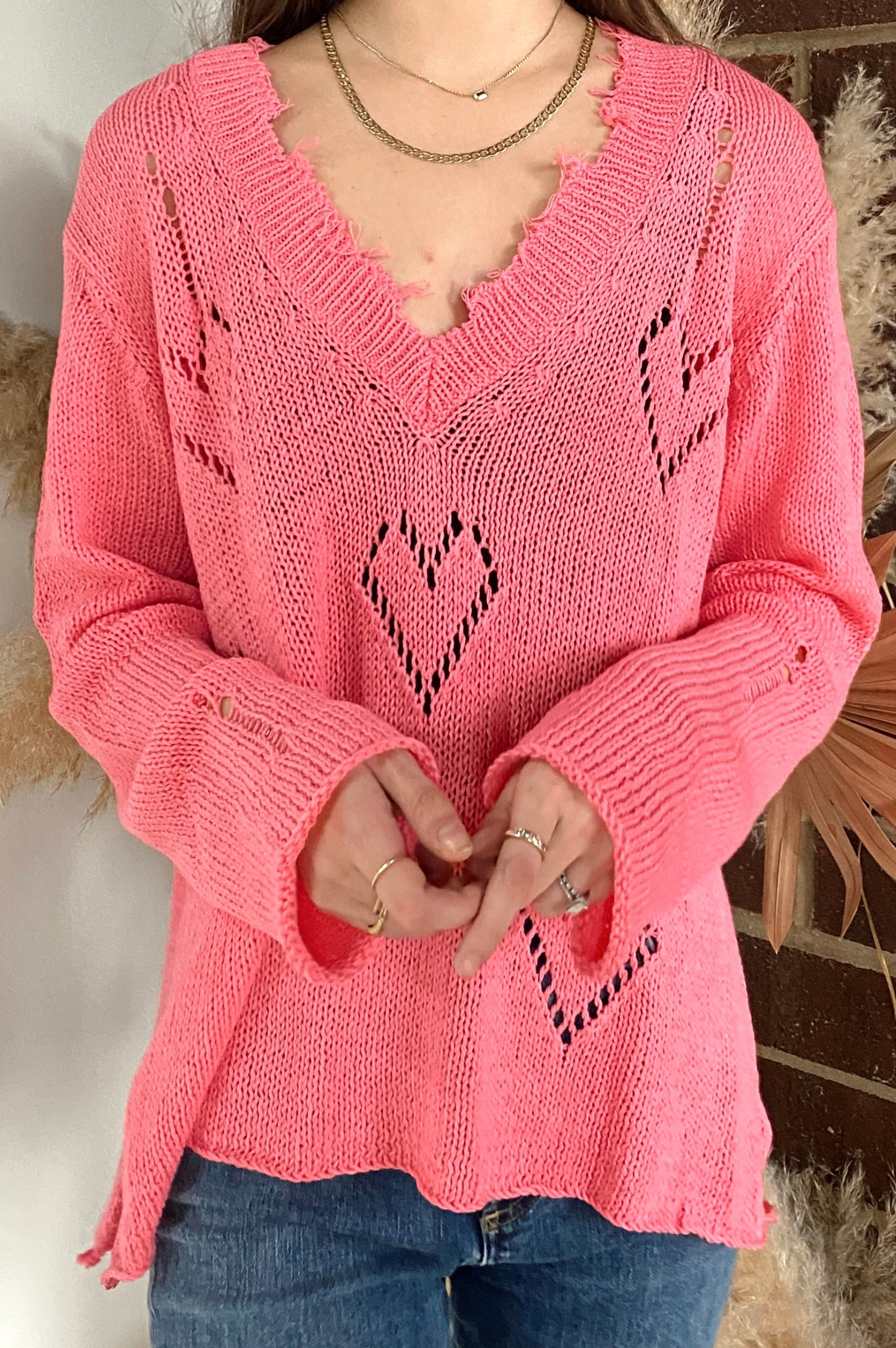 Aimee Distressed V Cotton Sweater